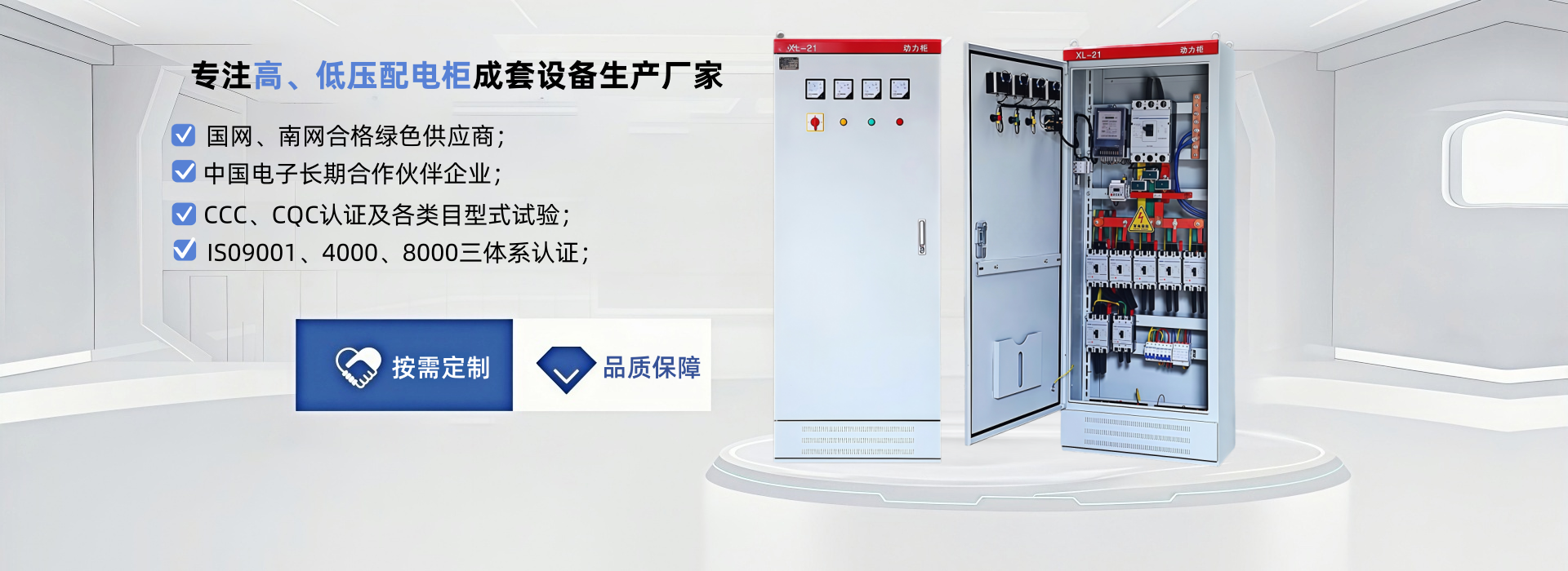 昌偉業(yè)是一家專注于高低壓配電柜產(chǎn)品,研發(fā)、生產(chǎn)、銷售和服務(wù)為一體的高新技術(shù)企業(yè),位于江蘇無錫。擁有兩大生產(chǎn)基地和兩大技術(shù)研發(fā)中心,占地面積3萬平米,員工100余人,聚集行業(yè)人才、技術(shù)、設(shè)備等優(yōu)勢資源,公司自創(chuàng)立以來,就確立了以”安全高效、質(zhì)量至上、信譽(yù)至上”為經(jīng)營宗旨,已與國內(nèi)外眾多家上市公司、央企及行業(yè)知名龍頭企業(yè)成為戰(zhàn)略合作伙伴,有著良好的口碑和品牌影響力。